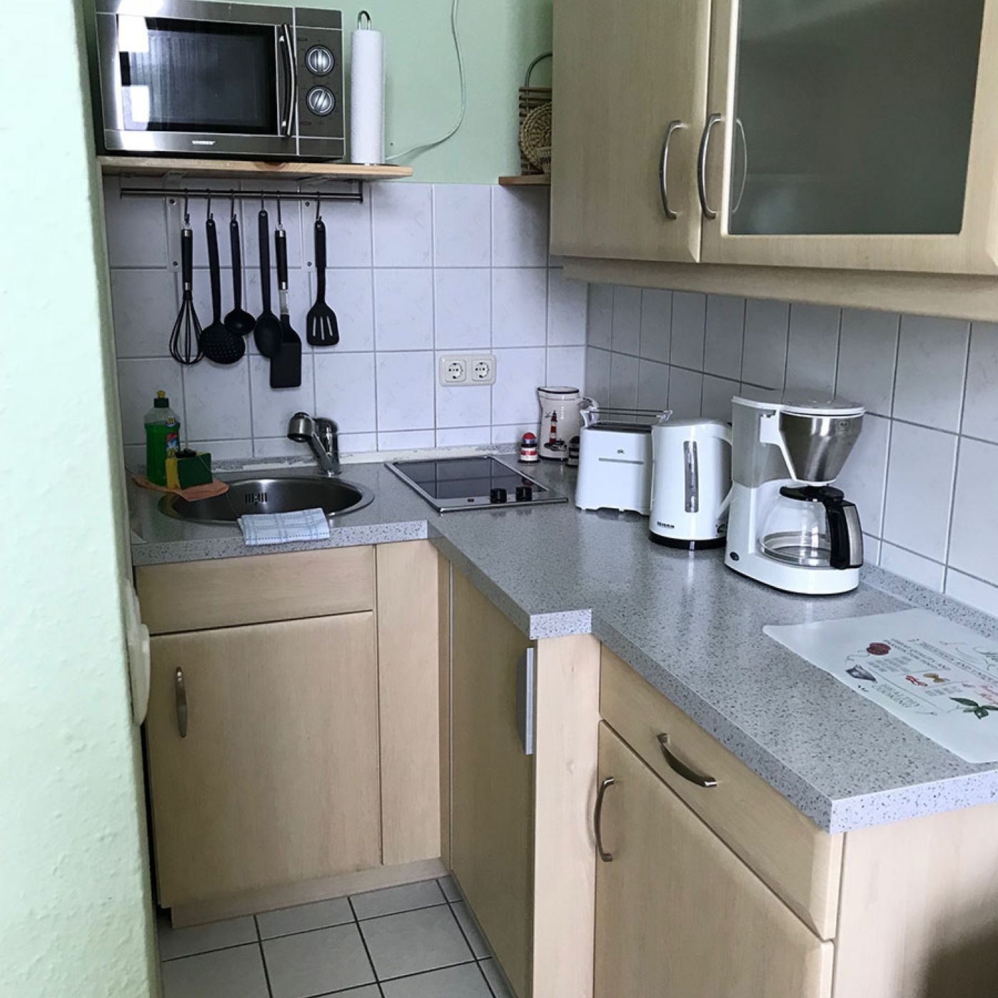 im Landhausstil gemütlich eingerichtetes Appartement mit Doppelbett für 1 bis 2 Personen, Küche und Duschbad