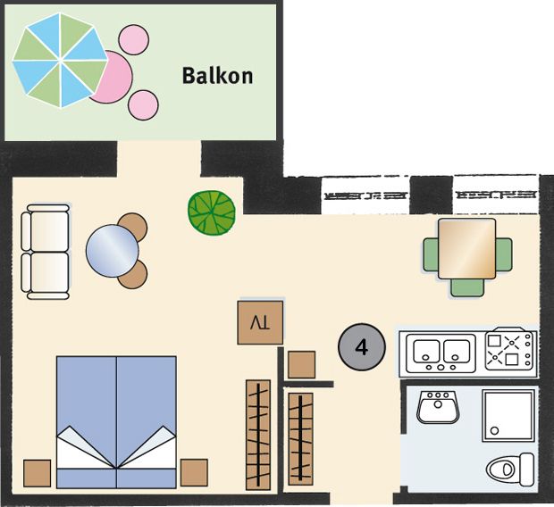 Einzimmerappartement mit großem Balkon und traumhaften Blick auf das Salzhaff, geeignet für 2 Personen.